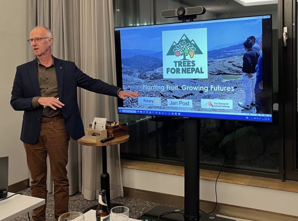 Afgelopen weken heeft Jan diverse presentaties gegeven bij Rotaryclubs in ons District 1600, om ons nieuwe Global Grant Project “‘Trees for Nepal” onder de aandacht te brengen. Deze week was hij te gast bij Rotaryclub Den Haag- Des Indes.
